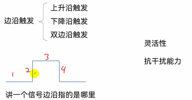 设置触发时机(上升沿、下降沿、双边沿或低电平触发)。