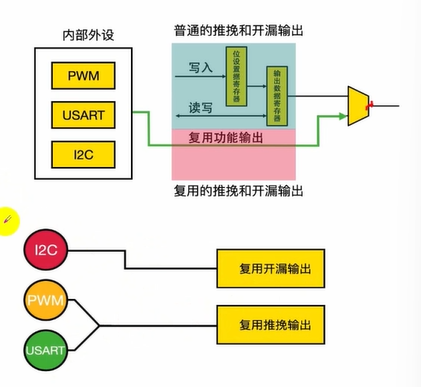 这种技术可以节省引脚数量,提高系统的灵活性和效率。复用推挽输出是其中一种常见的复用方式,它使用推挽输出器来驱动共享的物理引脚。