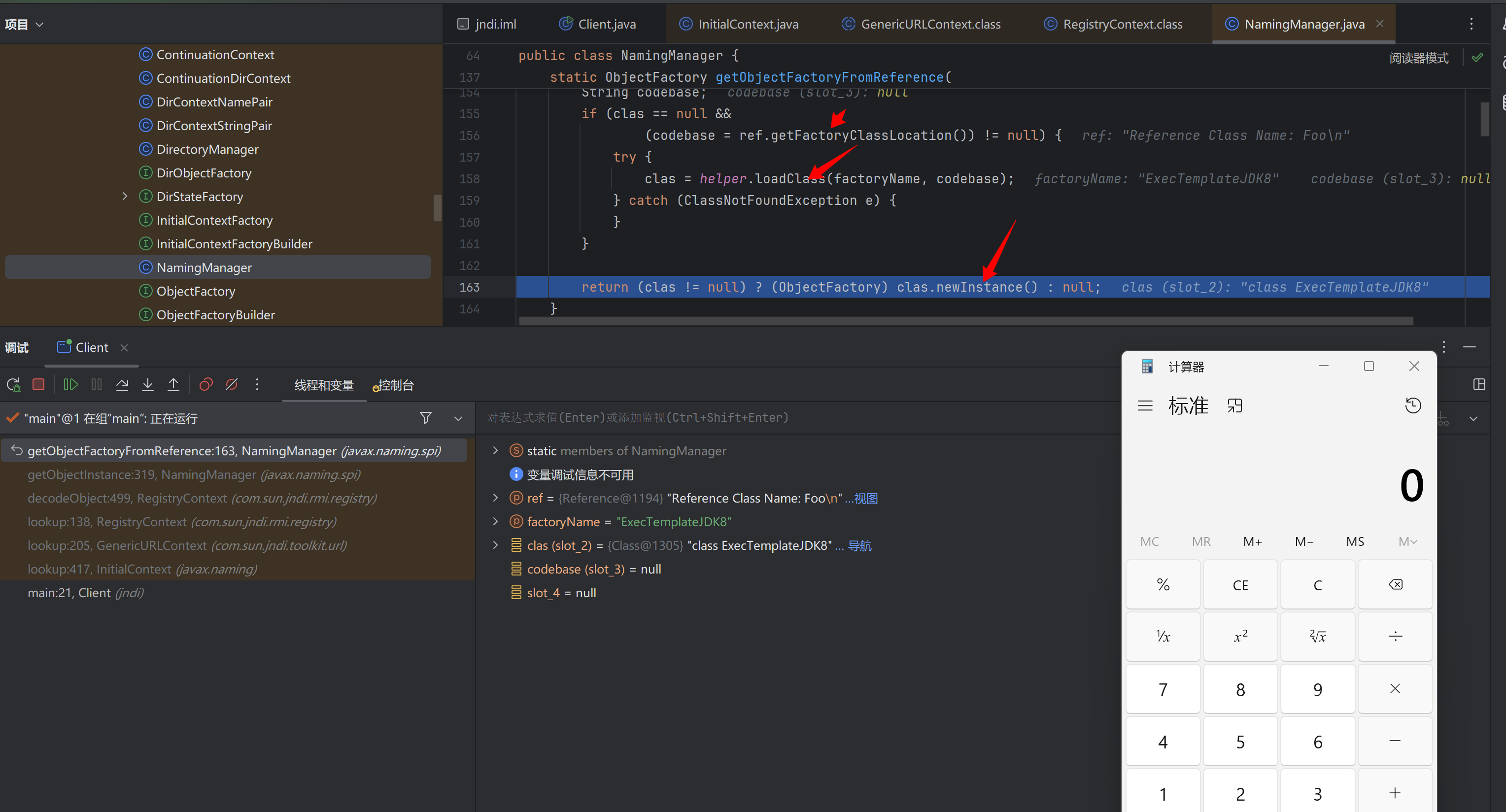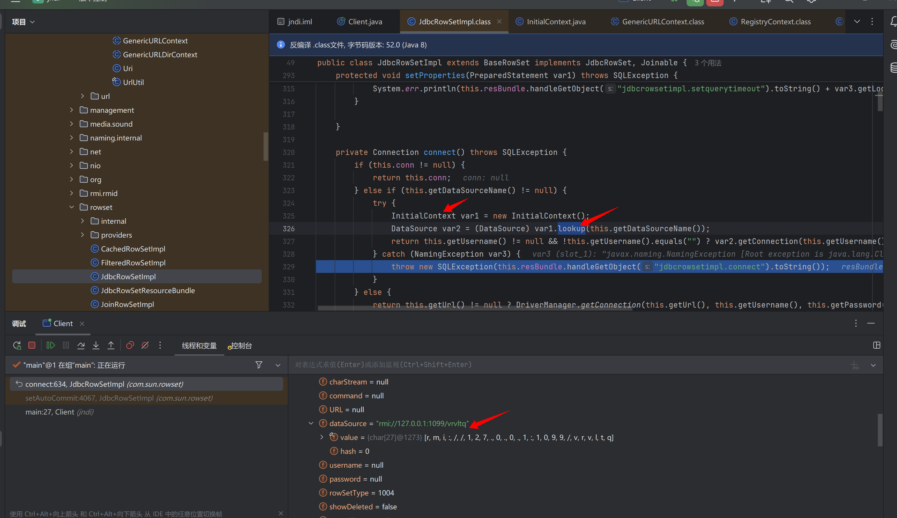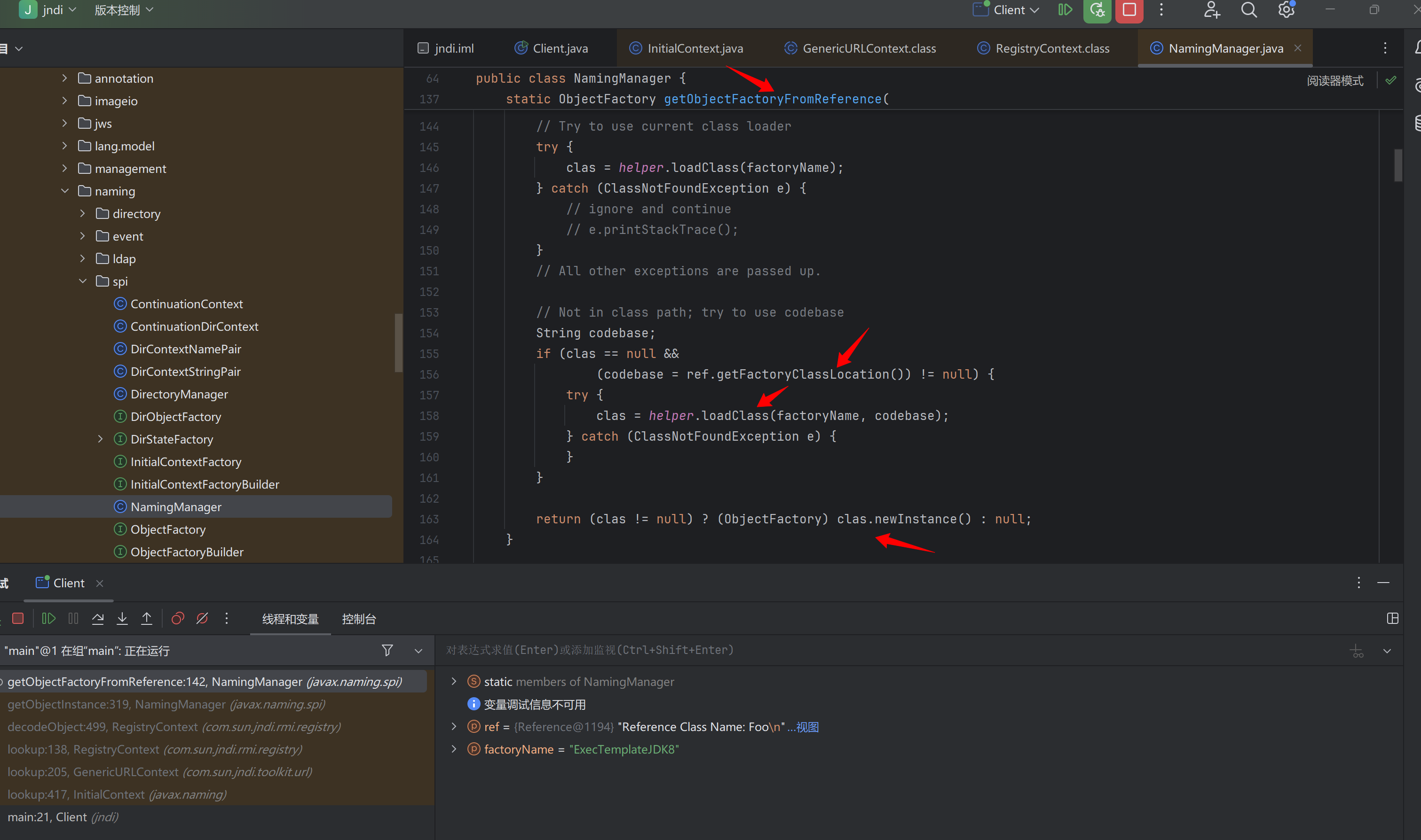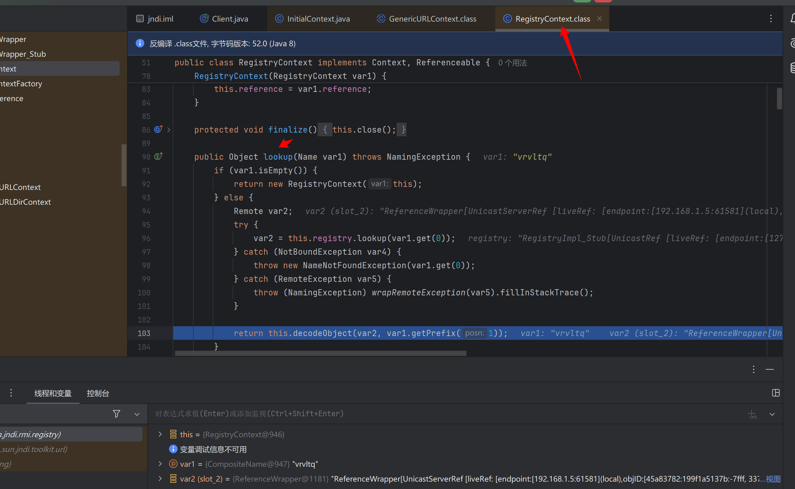 到这儿就能清晰了 本质上还是InitialContext调用lookup()函数