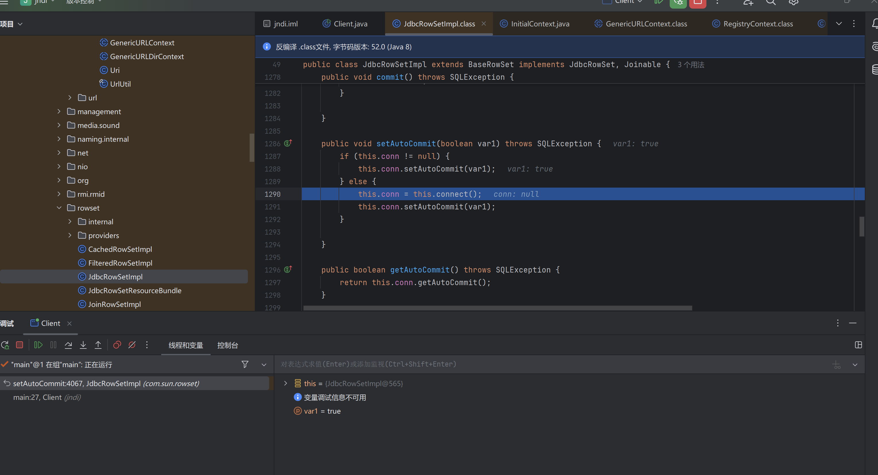 //JdbcRowSetImpl利⽤链