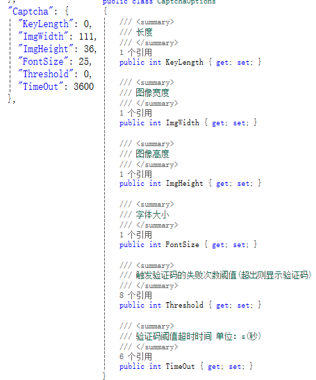 Captcha节配置对应Ape.Volo.Core项目的CaptchaOptions类,属性含义如下图所示: