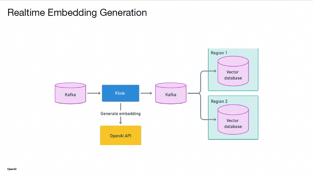 从高层次看,数据飞轮是一个自强化系统,其中数据生成、模型改进和产品使用不断相互促进,以推动性能和价值的提升。我们发现,更快地将产品使用数据反馈给大模型,实际上能带来有意义的差异。流处理技术可以通过提供一个可扩展的框架,在 OpenAI 的规模上近乎实时地处理和转换数据,从而帮助实现数据飞轮的目标。
