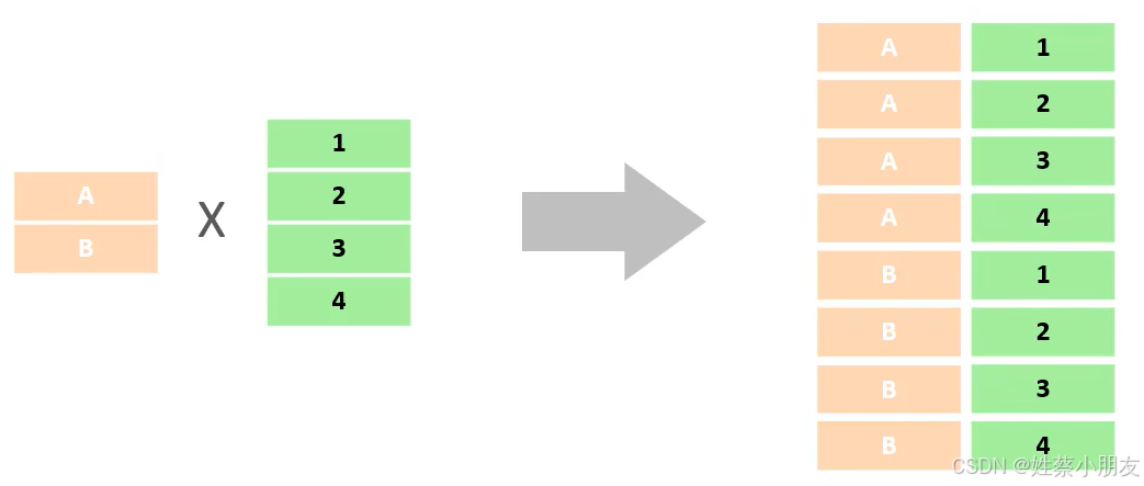 多表查询时如果没有指定条件那么查询结果就是笛卡尔积。例如A表有2条数据,B表有4条数据,那么笛卡尔积就是2×4=8条数据。