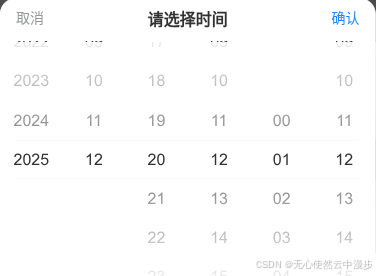 const values = ref(['2025','12','23','12','01','12']);//设置初始日期时间