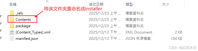 1.4将解压后的文件夹:Contents 修改成 Installer