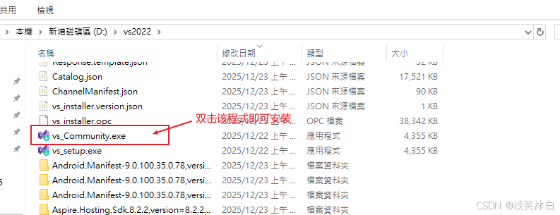 vs_Community.exe --layout "D:\VS2022" --lang zh-CN --add Microsoft.VisualStudio.Workload.ManagedDesktop --add Microsoft.VisualStudio.Workload.NetWeb --add Microsoft.VisualStudio.Workload.NativeDesktop --add Microsoft.VisualStudio.Workload.Universal --includeOptional --includeRecommended