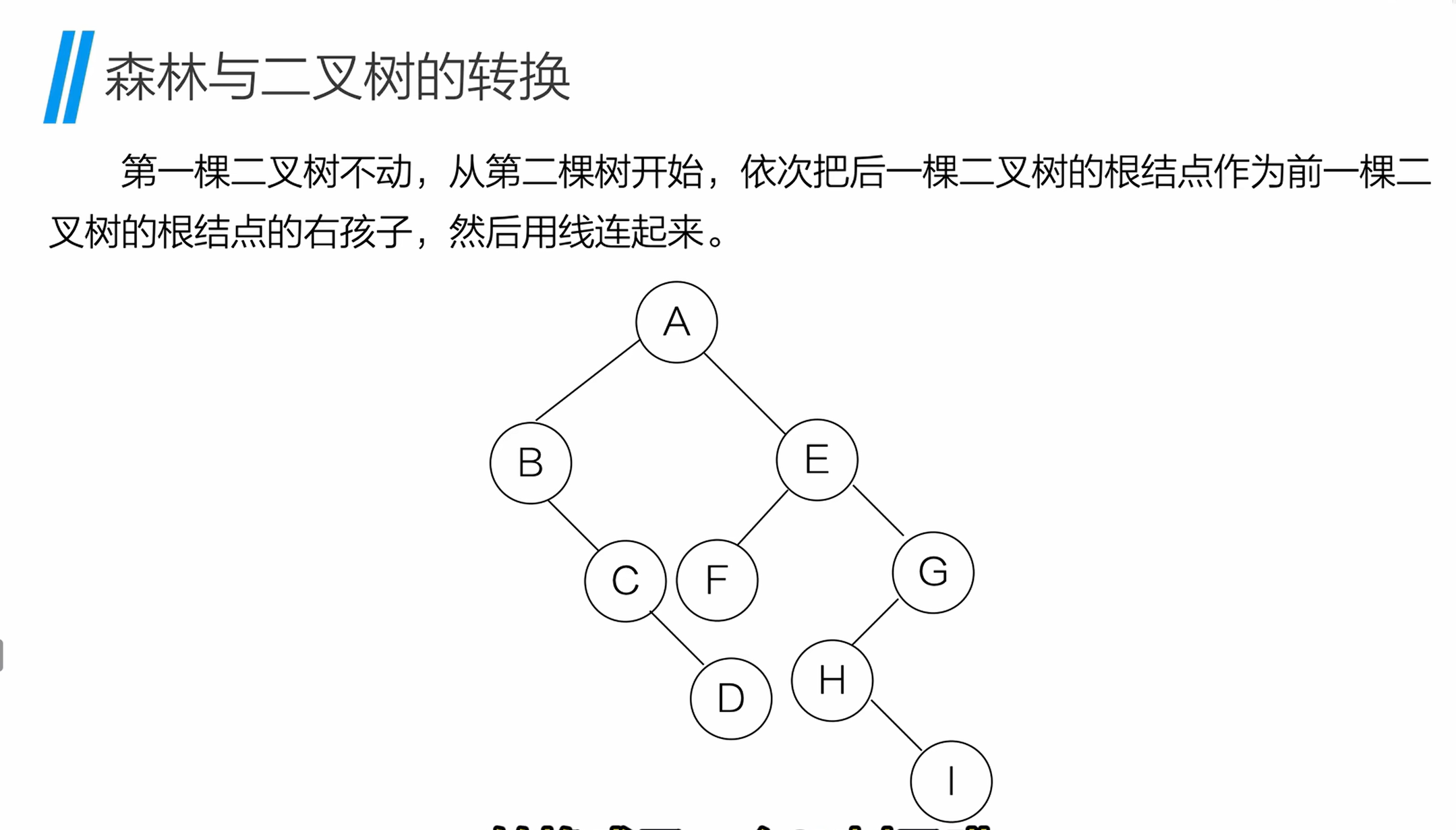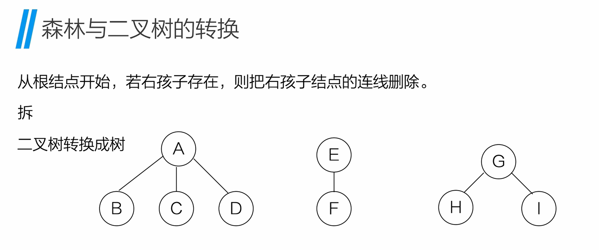 - 将拆分出的每棵二叉树,分别还原为普通树,组成森林。