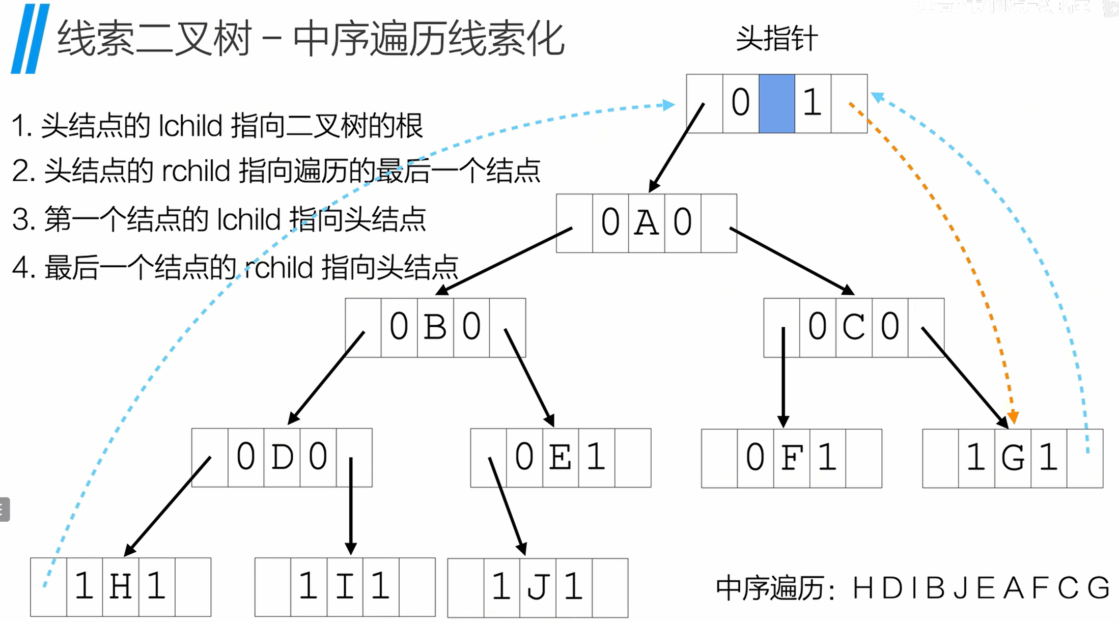通过节点结构体存储数据、左孩子指针、右孩子指针,这是二叉树最常用的存储方式,能灵活表示任意形态的二叉树。
