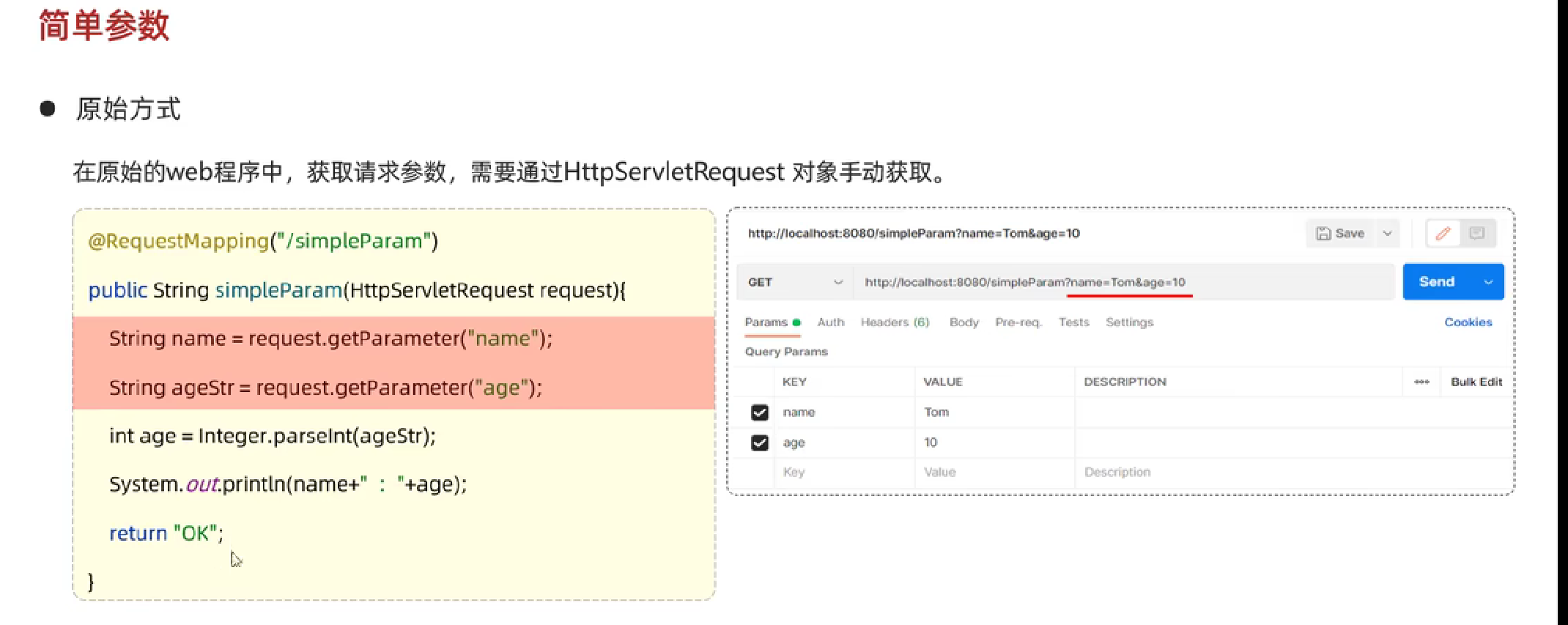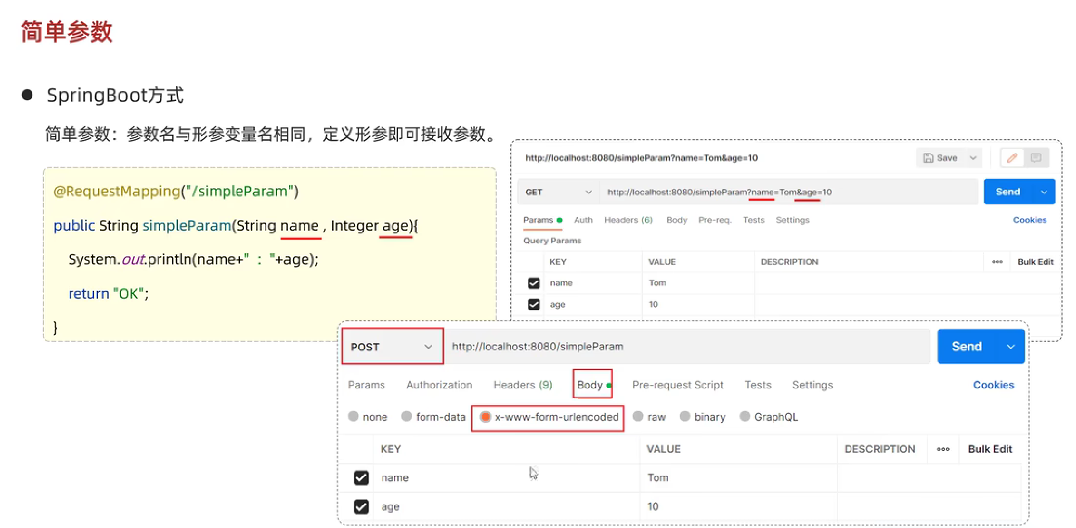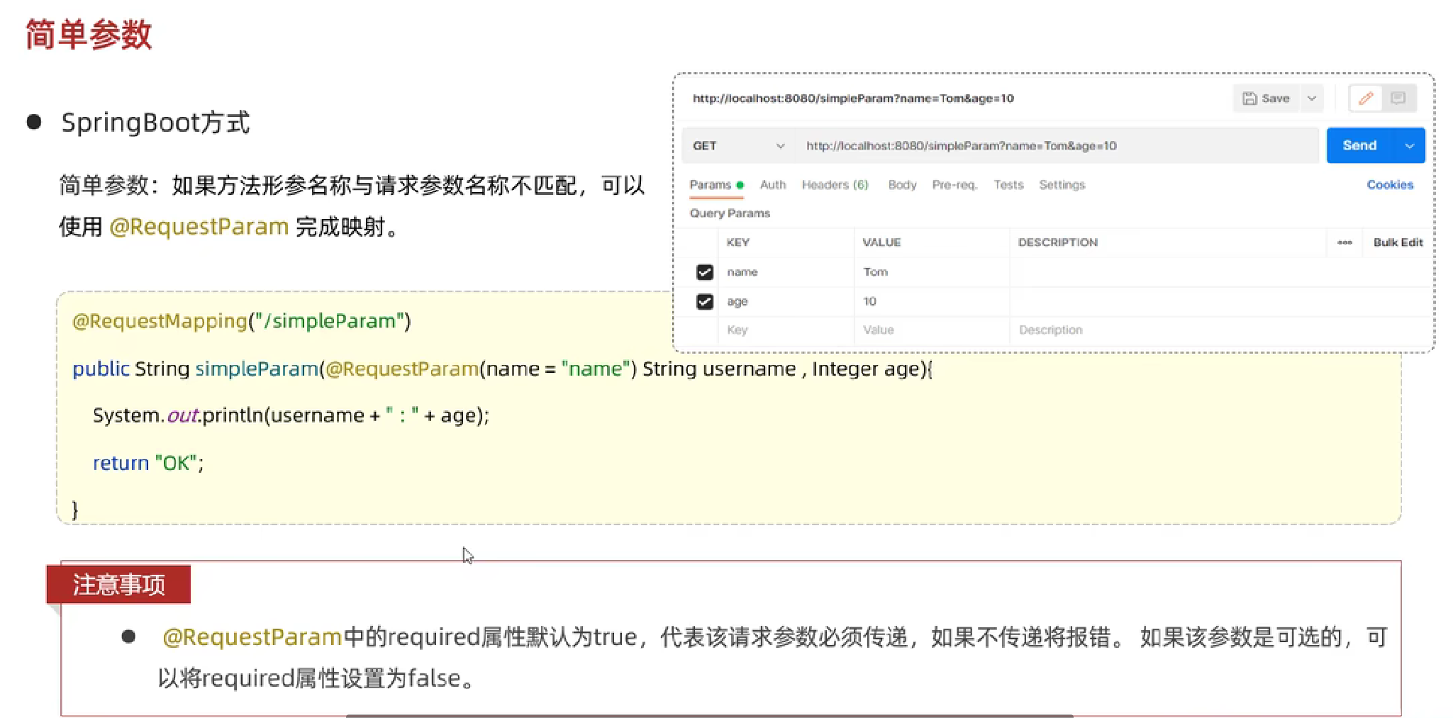 public String simpleParam(@RequestParam(name = "name",required = false) String username, Integer age) {