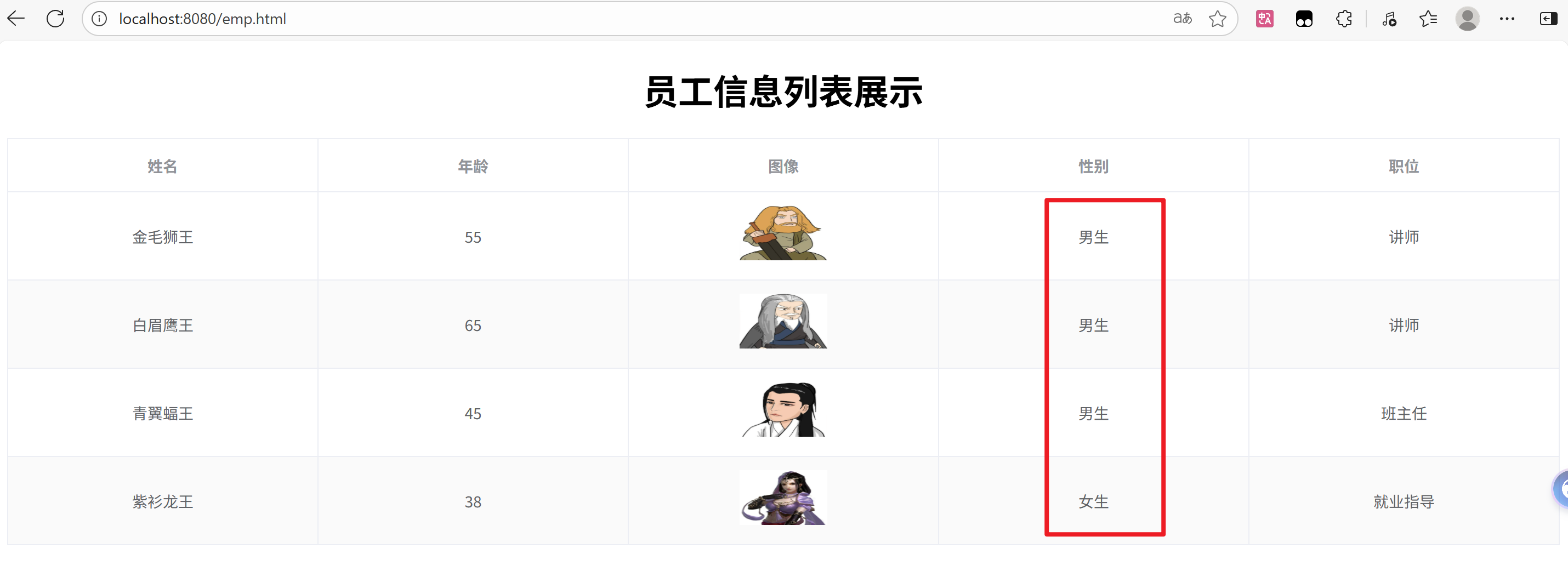 <h1 style="text-align: center;">员工信息列表展示</h1>