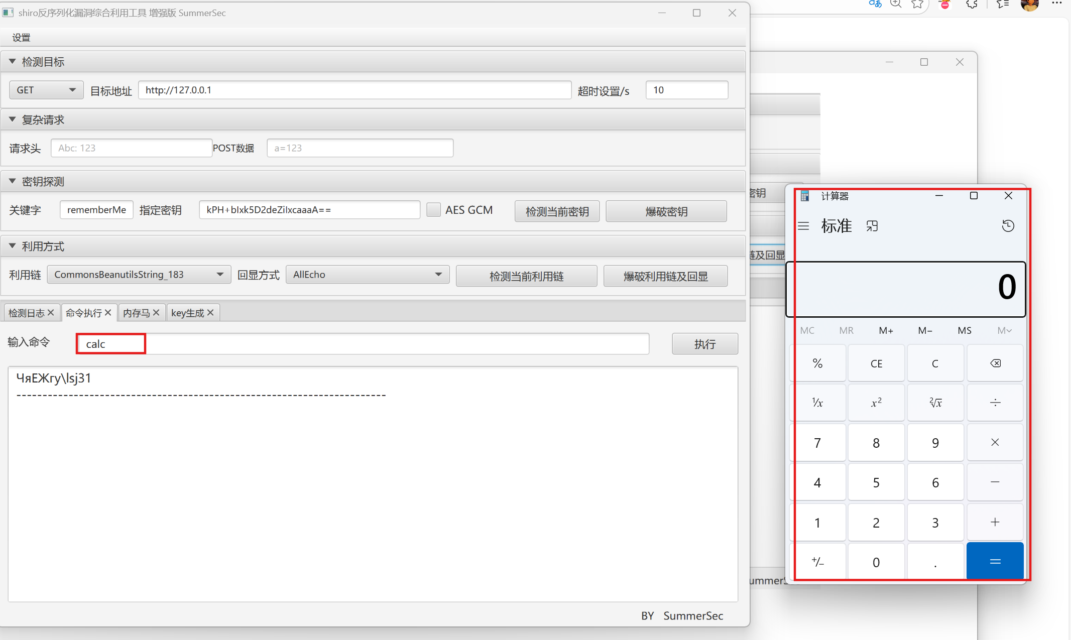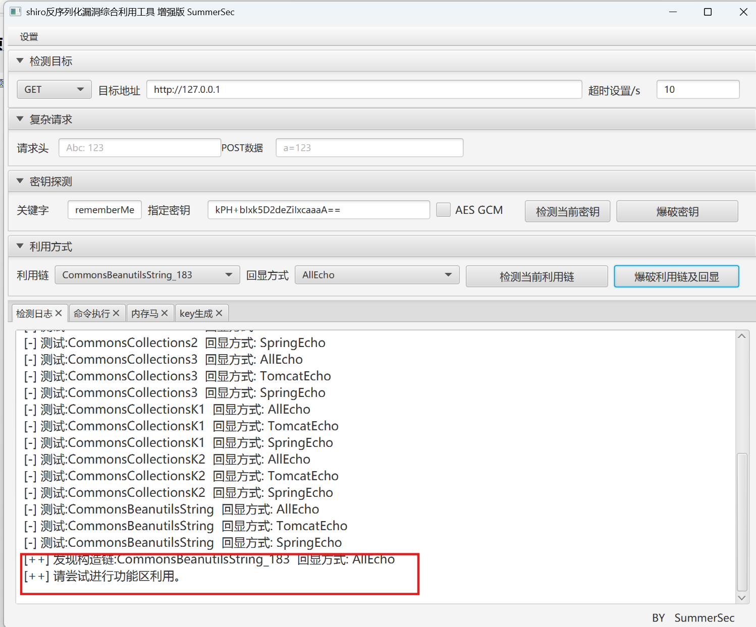 若手动构造链较繁琐,可使用自动化工具(如 ShiroAttack2)直接完成密钥爆破、利用链检测和命令执行。