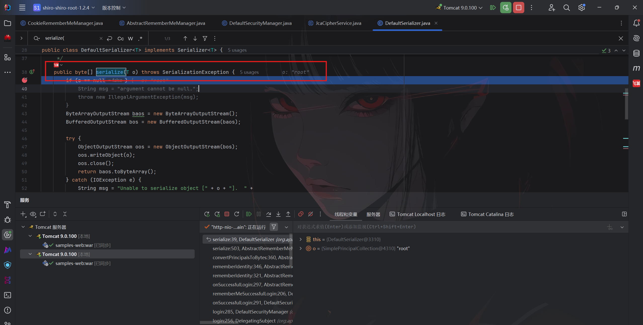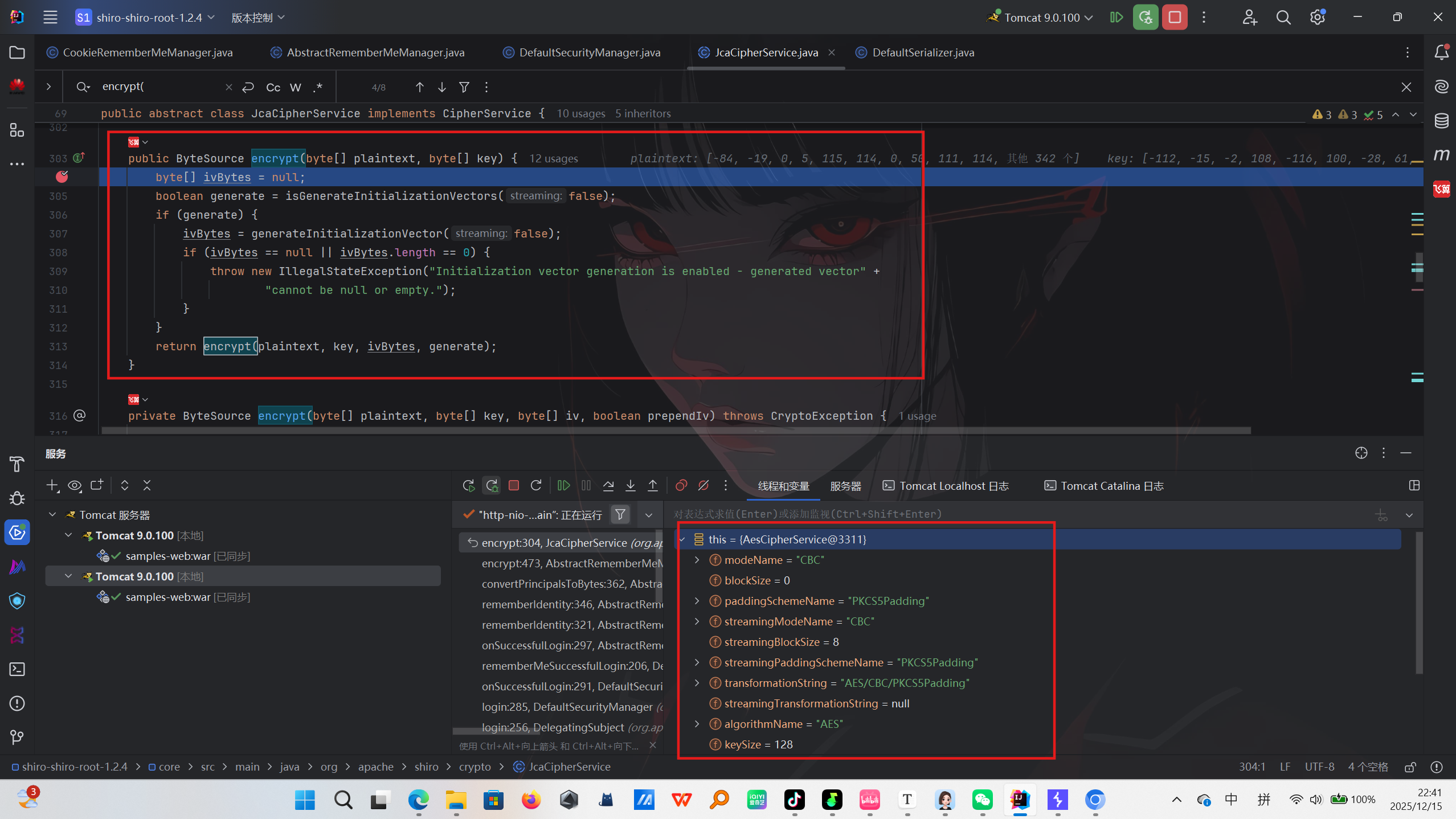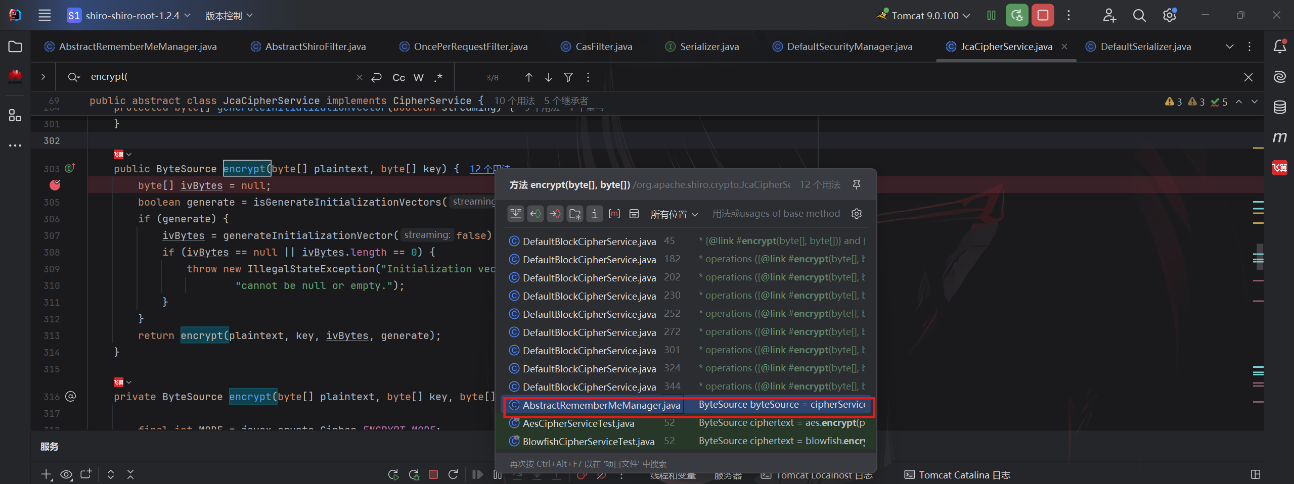 继续跟发现了JcaCipherService类的encrypt方法