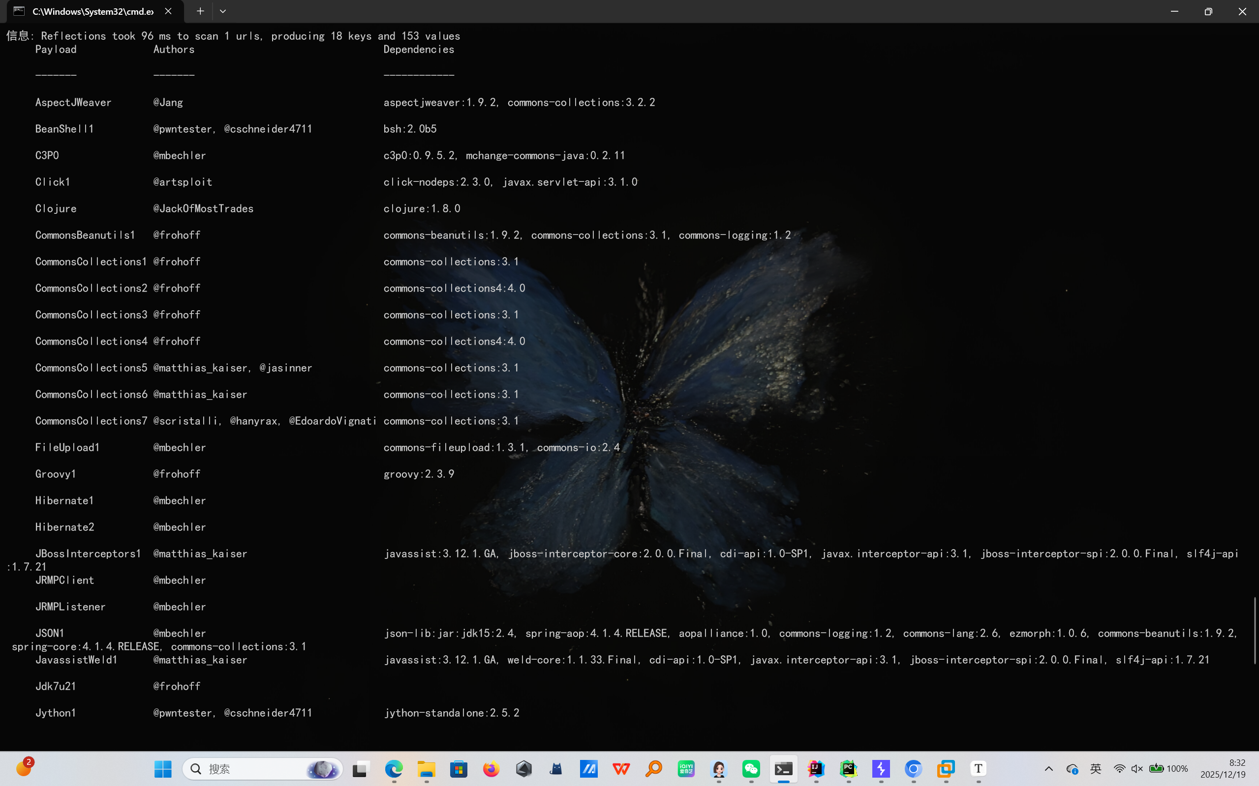 查看支持的利用链:执行以下命令可列出所有可用链(链的有效性取决于目标服务器是否存在对应依赖库):