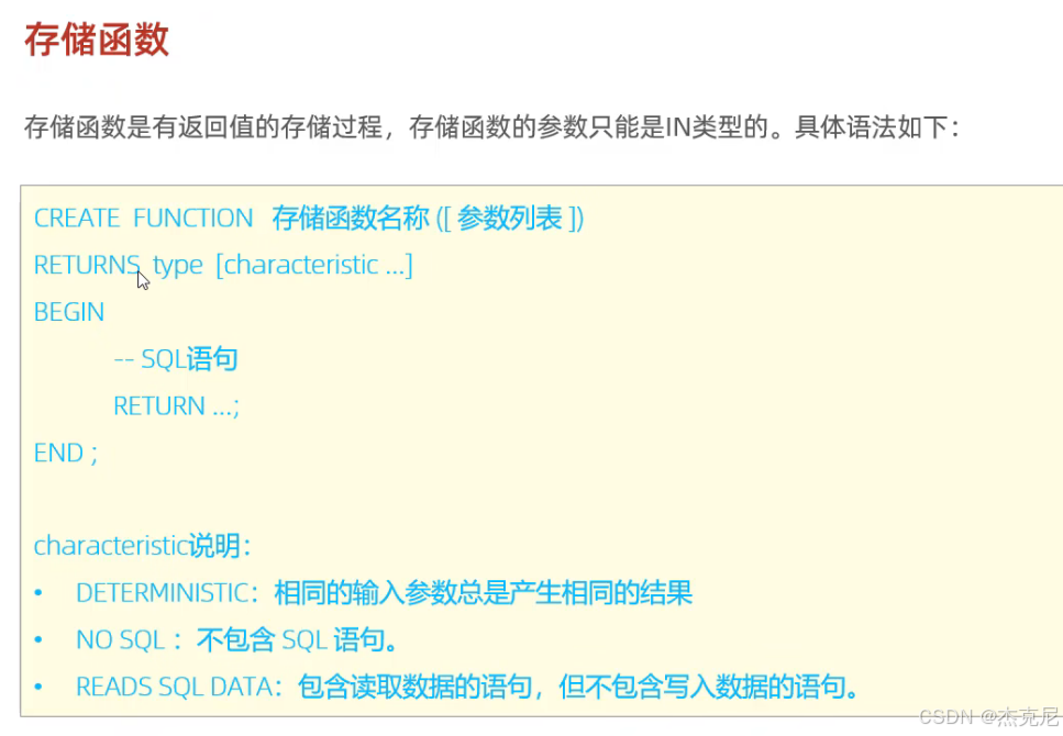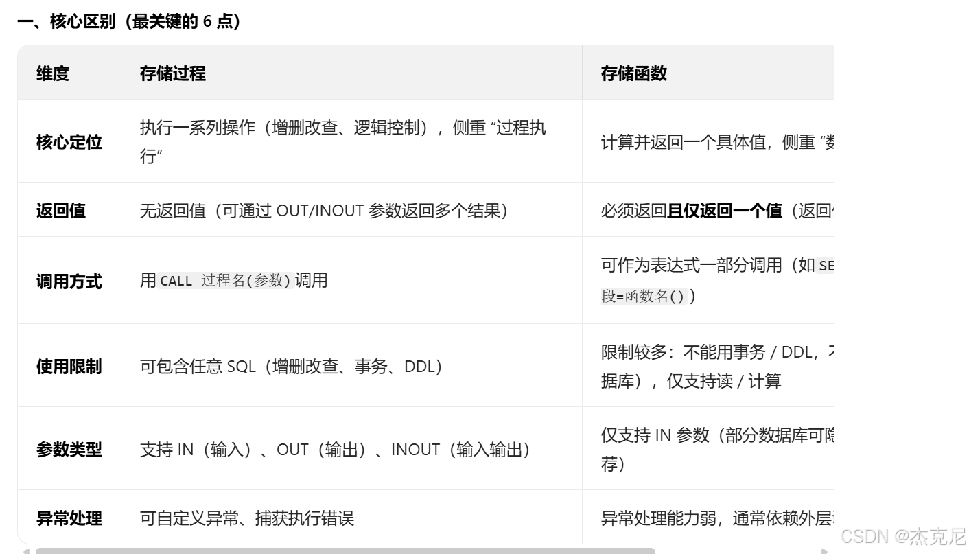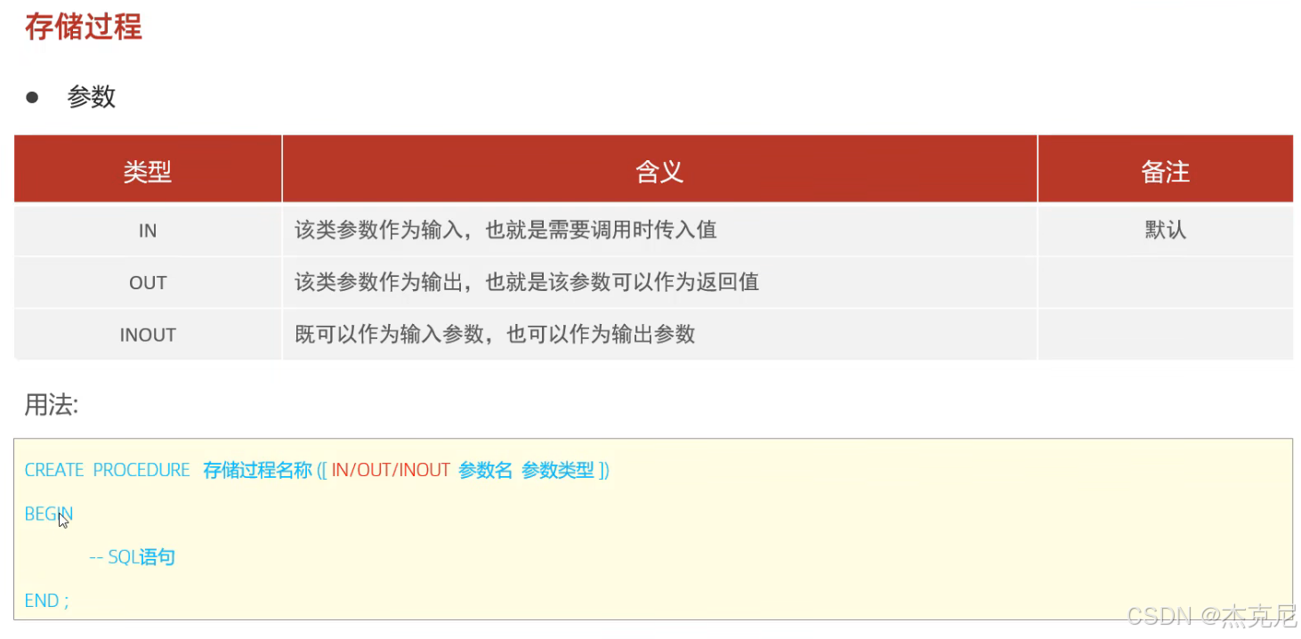 另外,存储函数用的少,因为存储过程可以替代(包含他(inout))他
