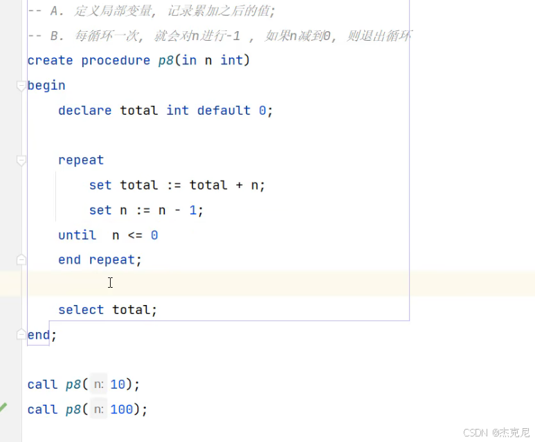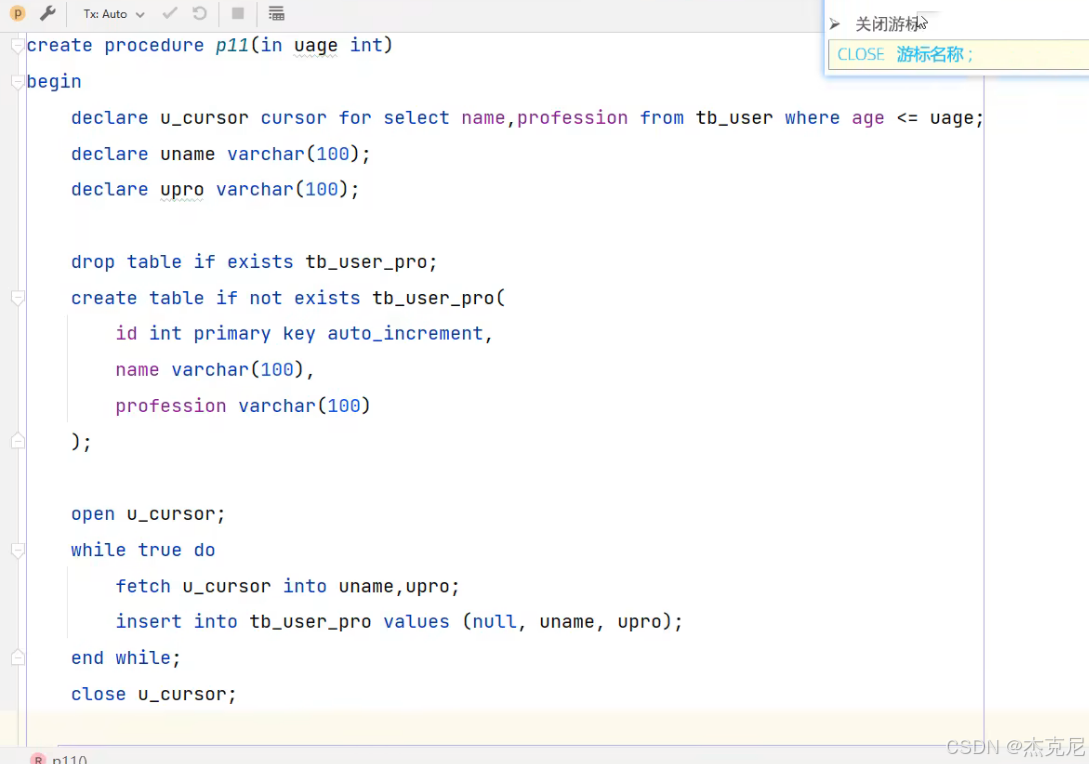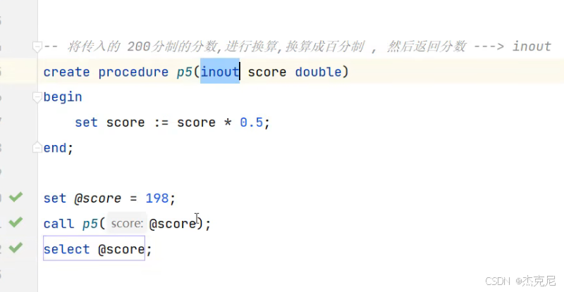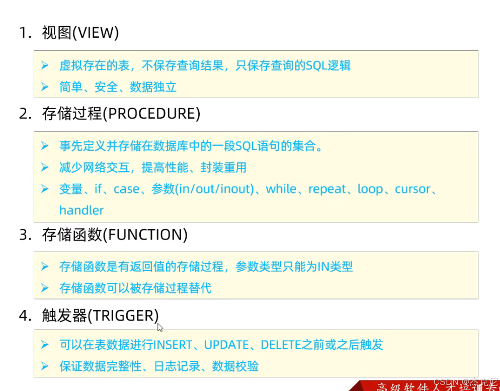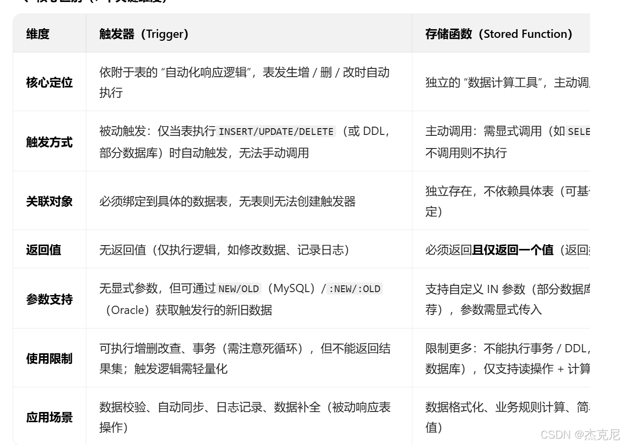 另外,存储函数用的少,因为存储过程可以替代(包含他(inout))他