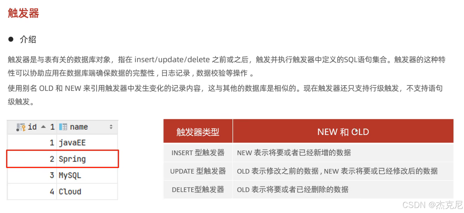 举例;执行update语句,影响了5行,update类型触发器执行了5次那就是行级触发器,不管影响了几行都是执行一次触发器,那就是句触发器