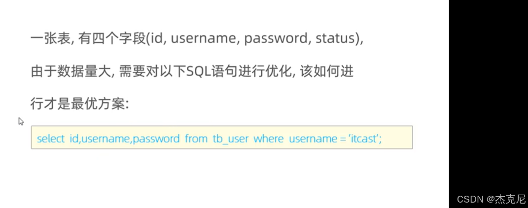设计username和password的聚集索引,这样他们的叶子节点存储的就是id值,这样也不会回表查询,效率最高