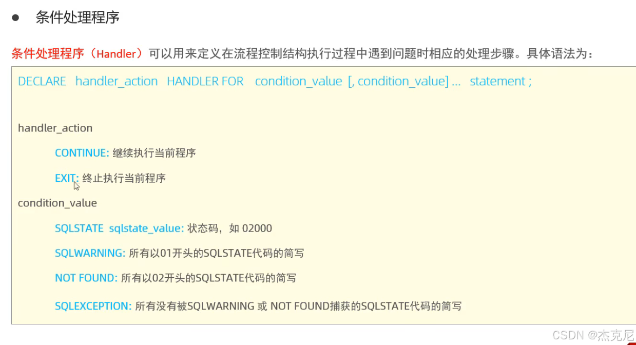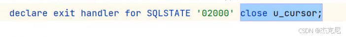 设置一个条件处理程序,当'SQLSTATE'='02000'(这个表示为空(可以替换为not found))时就执行exit退出,在这之前先关闭游标