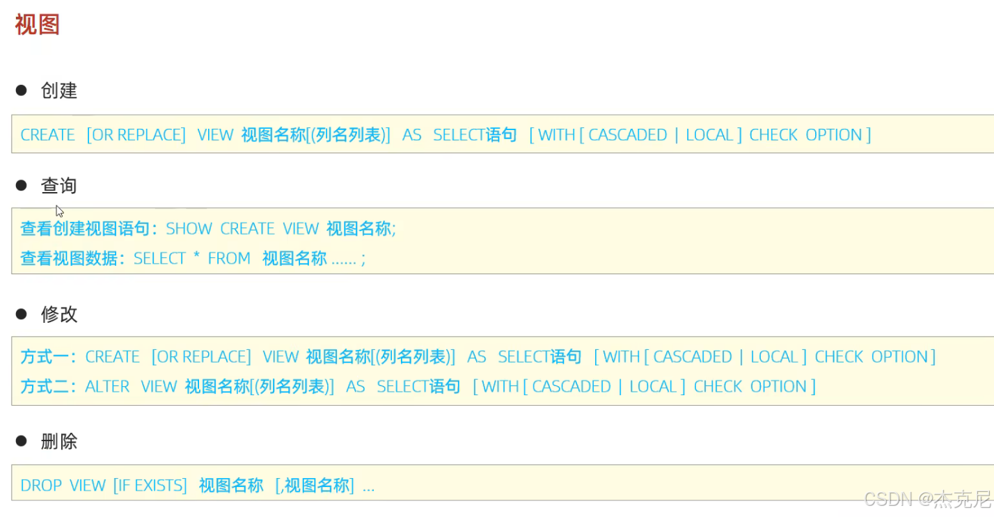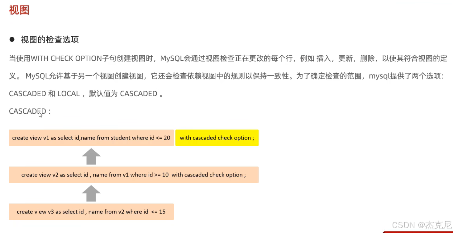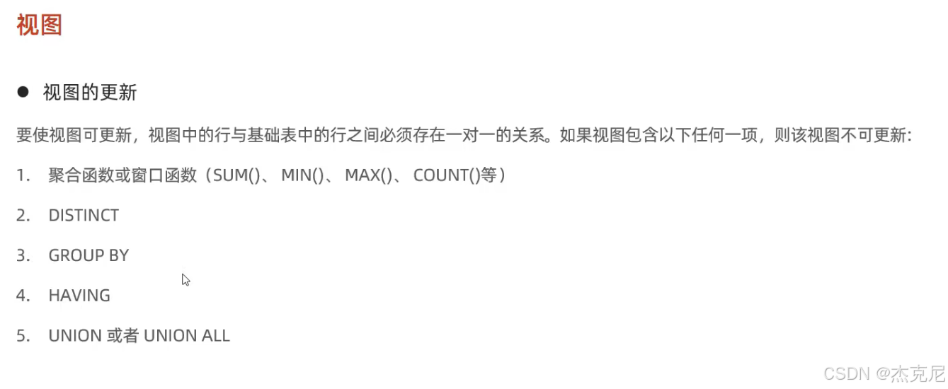 视图中的行必须与表中的商之间存在一对一的关系,就是select不能有上述的函数