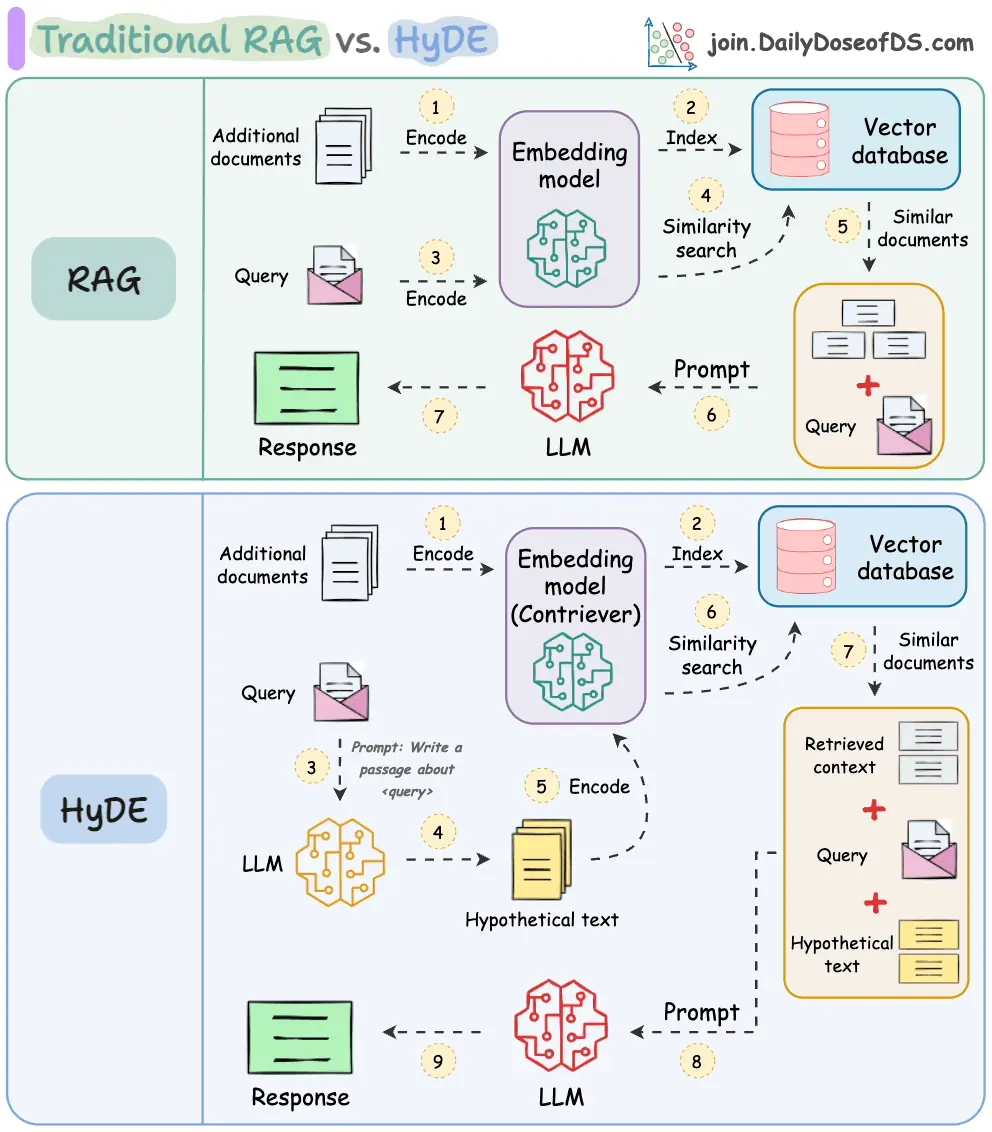 常见的知识库QA对有一个问题就是关键词的狭隘性,用户的提问通常都是多变的,如果用户换了另一种方式或者另一个关键词提问可能就查询不到对应知识。目前其中一种解决方案是HyDE,其思路是通过假设性文档拓展提问上下文。