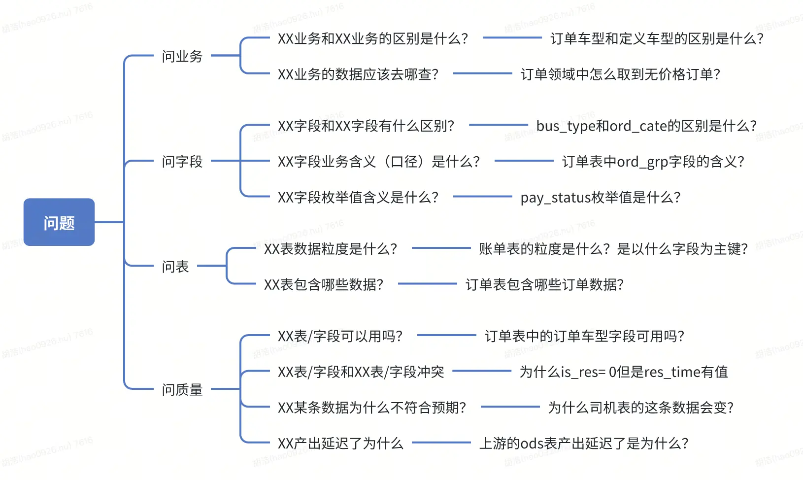 事实上,在我们日常的答疑工作中有一部分是数仓无法解决的,这一类问题我们通常需要接通到相关产品或者业务研发。从节省沟通成本的角度来看,数仓通过数据血缘将这一类问题直接引入到后端研发,跳过数仓答疑的环节即可。但是这其实是一种将答疑成本转嫁给其他人的行为,如果数仓不将这部分知识沉淀到数仓,那在未来同样会有重复的答疑工作。 - 数据质量问题难答疑