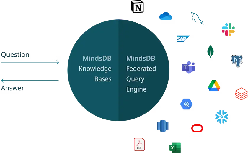 - MindsDB: An AI Data Solution 这个框架支持众多数据源集成,包括各种类型文件、数据库、向量存储、应用程序等,通过创建支持库可以将这些结构化和非结构化数据源的数据整合到统一的查询界面,最后通过大模型自然语言询问和返回,实现在所有数据上进行无缝查询和模型构建。