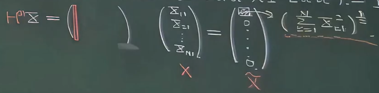 因为反射不改变模长,所以上三角矩阵的第一列的第一个元素为:(∑k=1Nxk12)12(\sum_{k=1}^Nx_{k1}^2)^{\frac{1}{2}}(∑k=1Nxk12)21