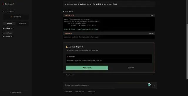 官方仓库里直接给了一套全栈 Demo(FastAPI 后端 + 流式 Web UI)。跑起来能看到 Agent 的完整思考过程(Reasoning traces),包括文件上传处理、人工审批步骤以及流式响应的效果,代码本身很有参考价值。