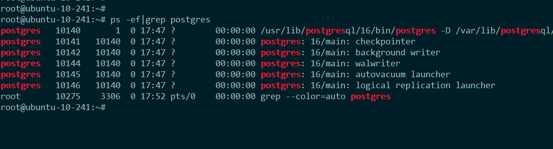 在 ubuntu 下通过 apt install postgresql 进行安装 postgres,在数据库软件安装完毕之后,postgres 就会自动启动