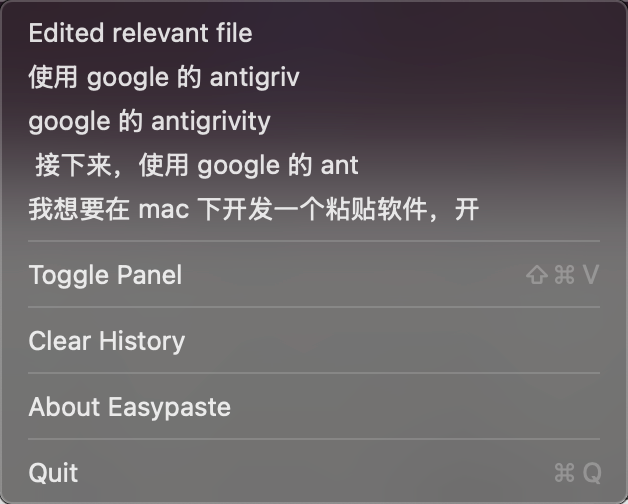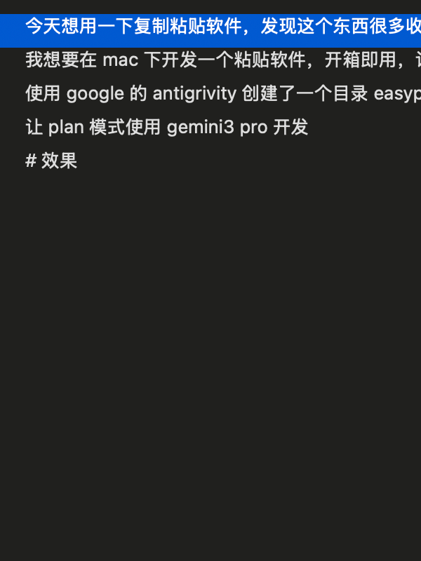 使用 google 的 antigrivity 创建了一个目录 easypaste ,将需求放到 readme.md中