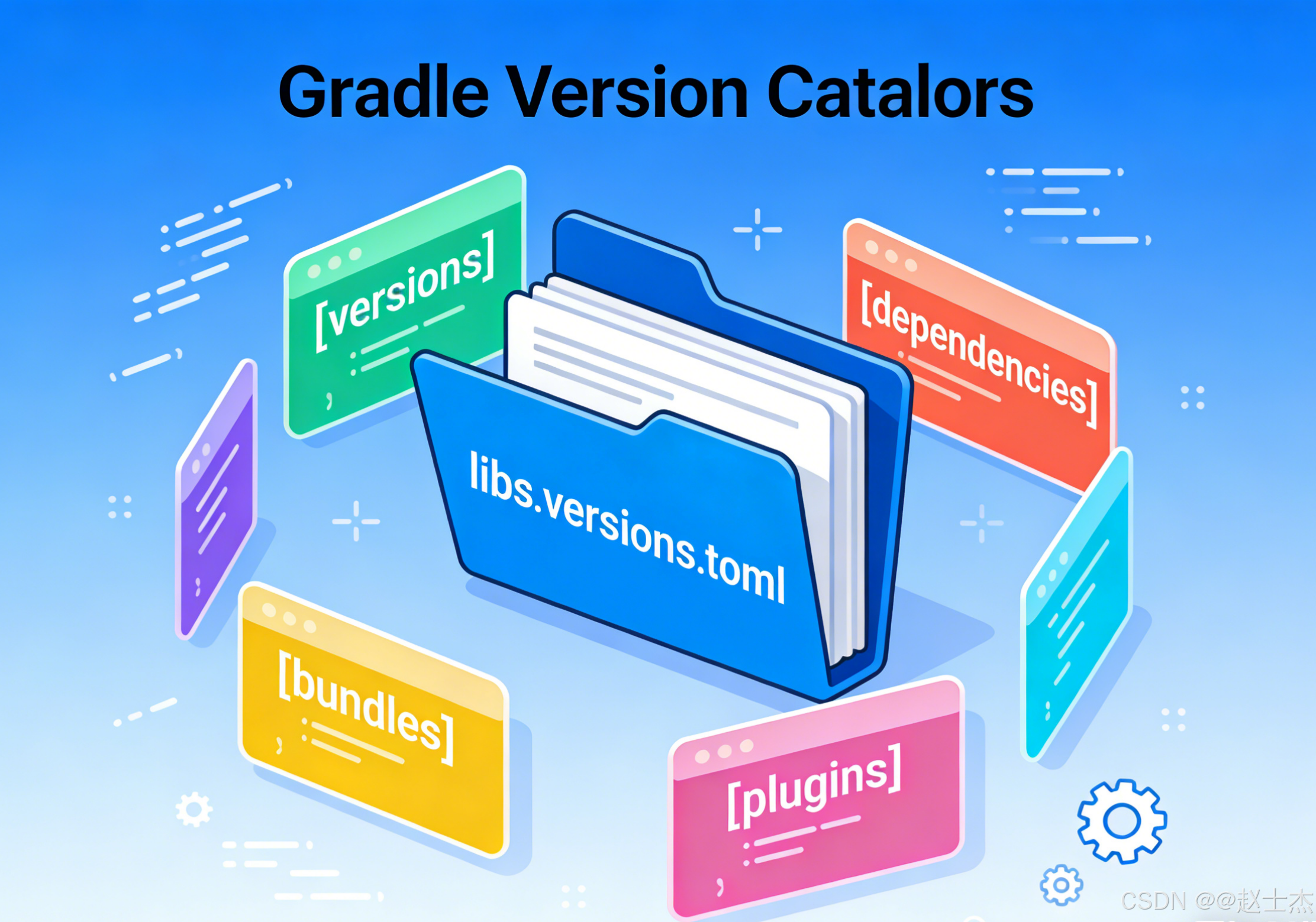 Version Catalogs 是 Gradle 官方推荐的集中式依赖版本管理方案 ,用于统一管理项目中所有依赖的版本信息------通过 TOML 格式的配置文件(默认是 libs.versions.toml),将项目中的依赖版本、库、插件及依赖分组进行结构化管理,最终实现版本集中控制、依赖引用标准化。