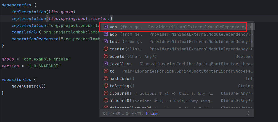 Gradle 生成 libs 对象时会自动将 libs.versions.toml 中的别名(依赖名、插件名、分组名)转换为符合 Kotlin 风格的属性名,核心规则如下: