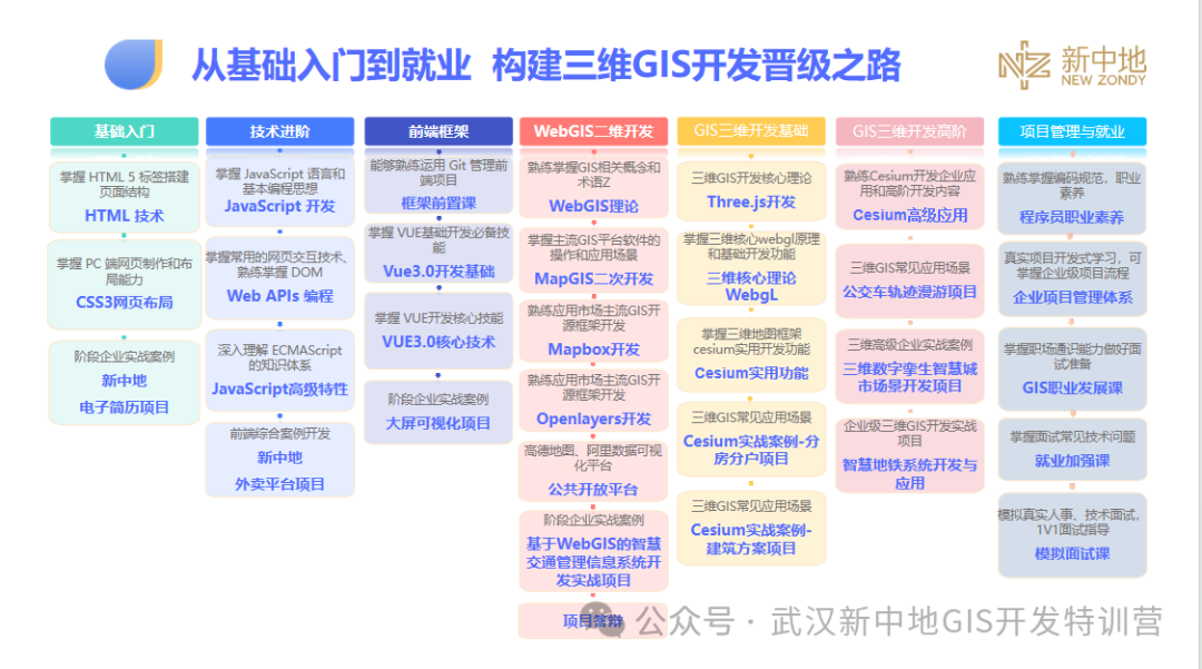 新中地GIS开发特训营学习周期为5个月,最新一期是12月22日开班,如果参加2507期,将正好赶上明年春招的尾声。