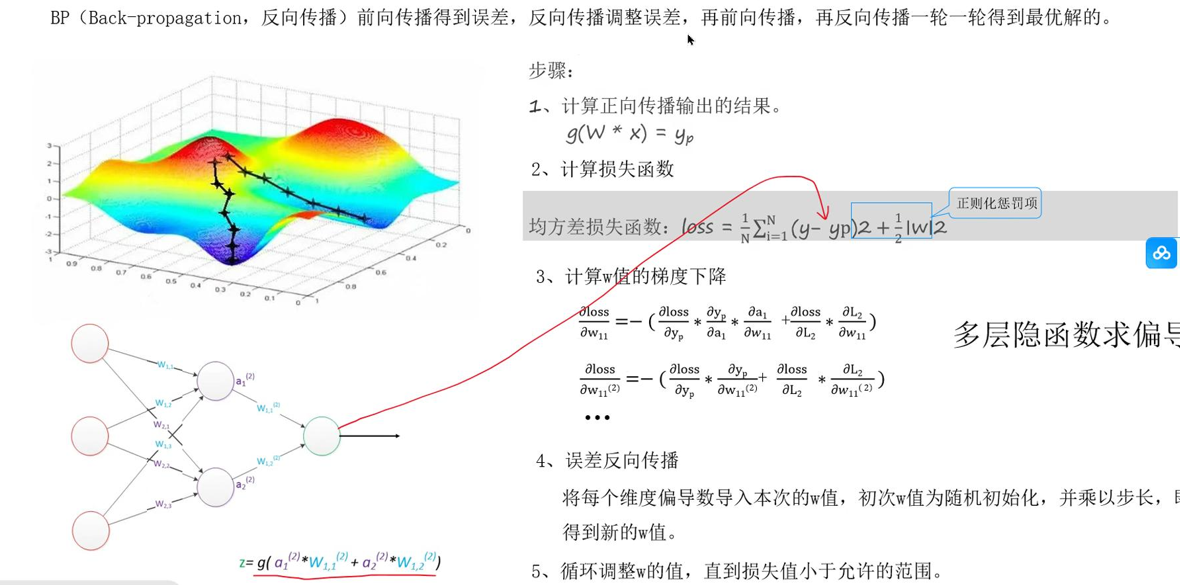 反向传播(Backward Propagation)------ 你遗漏的核心步骤 梯度下降需要用到损失函数对每个参数(权重 w + 偏置 b)的梯度,而梯度的计算正是通过反向传播实现的:
