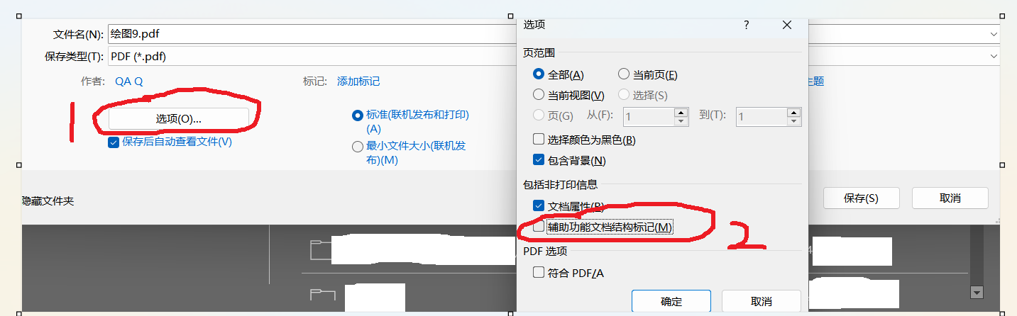 保存时取消勾选【辅助功能文档结构标记(M)】。