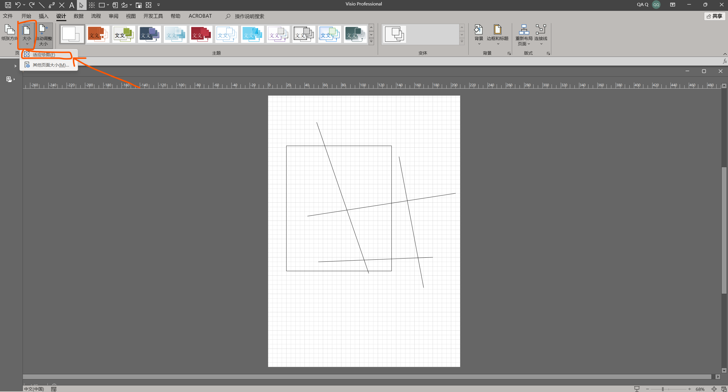 点击【大小】,【适应绘图】。