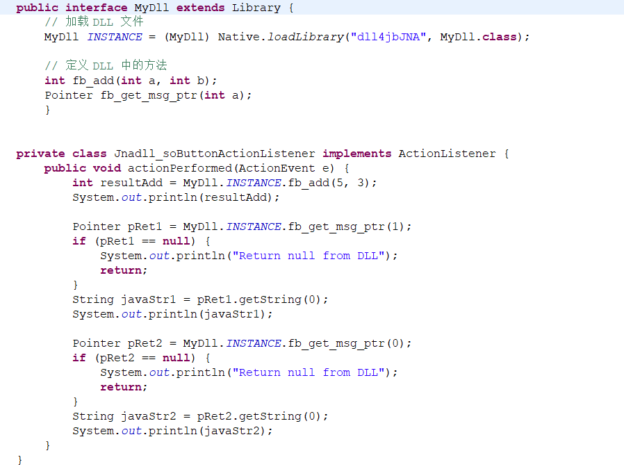 (2) jna 本地调用(需要在maven站点下载sun的jna库),调入dll后做接口,通过接口调用dll函数。