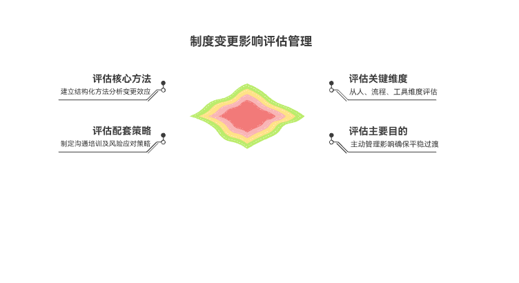 做好制度变更的影响评估,是一个系统性的前瞻性管理活动。其核心是建立一套结构化的方法,从"人、流程、工具"三个维度,全面识别、分析和量化变更可能带来的正面及负面效应,并据此制定沟通、培训和风险应对策略。 这套评估机制的目的,不仅是预测"会发生什么",更是为了主动管理这些影响,确保制度变更能够平稳过渡,并真正实现其预期价值,最大限度地减少阻力和运营混乱。