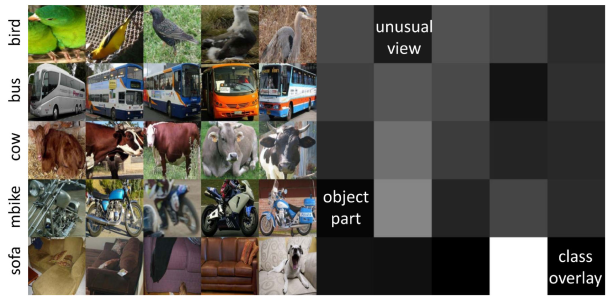 尽管 PASCAL VOC 数据集非常常用,但根据 Michaelis 等人的说法,它太简单了。通过双分支元学习方法和信息量不大的全黑支持图像,他们仍然能够定位新物体并达到 33.2 的 mAP50。然而,我们要强调的是,一般来说,对象不仅需要定位,还需要分类,即检测器还需要确定图像中存在哪个类别。
