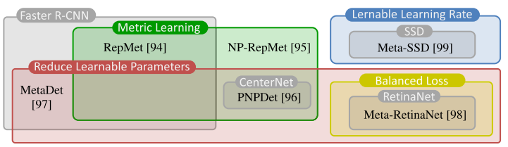 除了上述相关研究领域外,下面我们还将讨论 FSOD 中广泛采用的学习技术。
