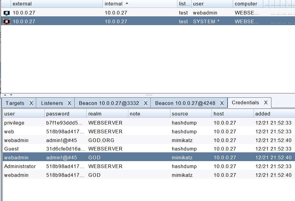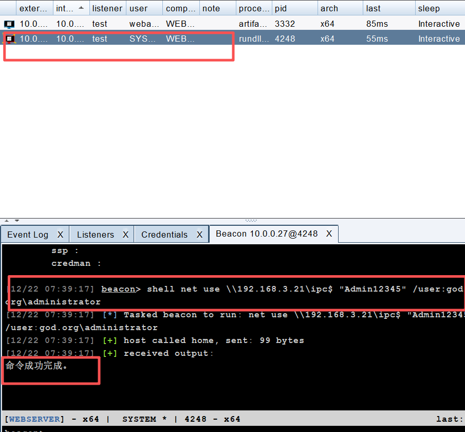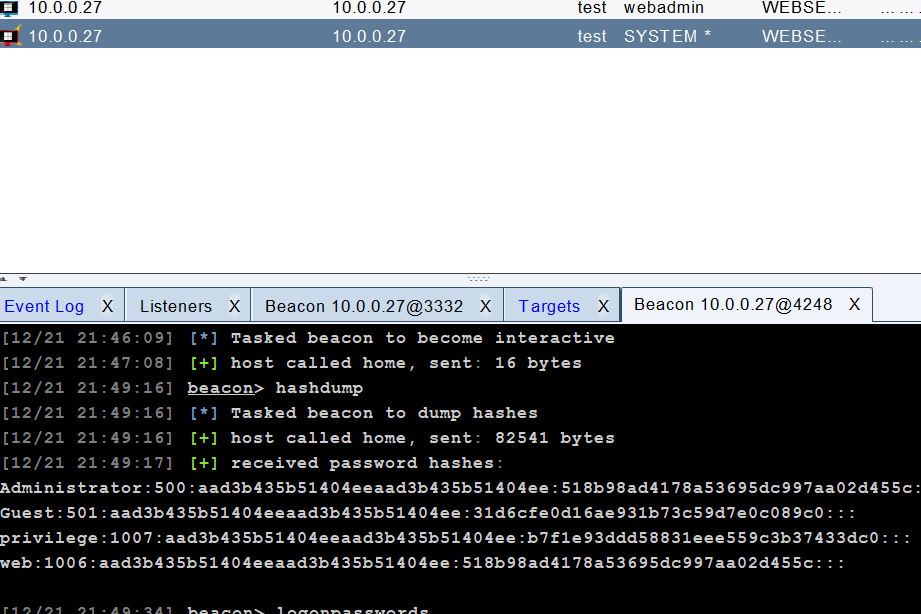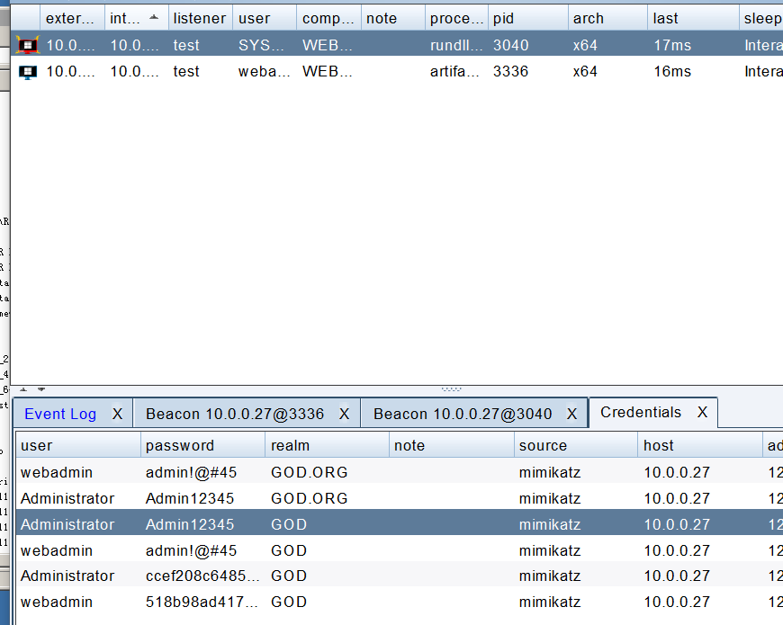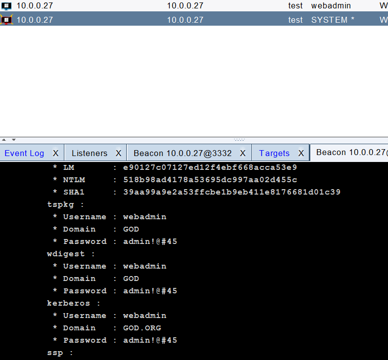 Windows7主机上线之后,再次执行mimikatz收集更多的用户凭据。收集完之后,再次使用这些凭据实现更多的横向移动!
