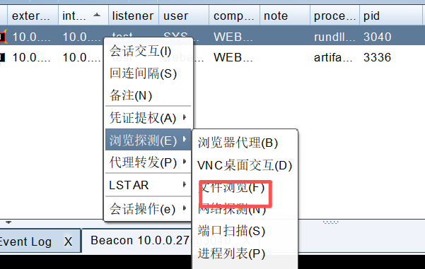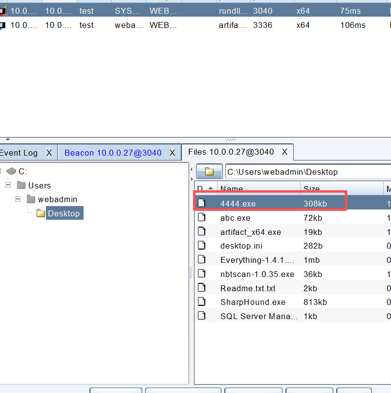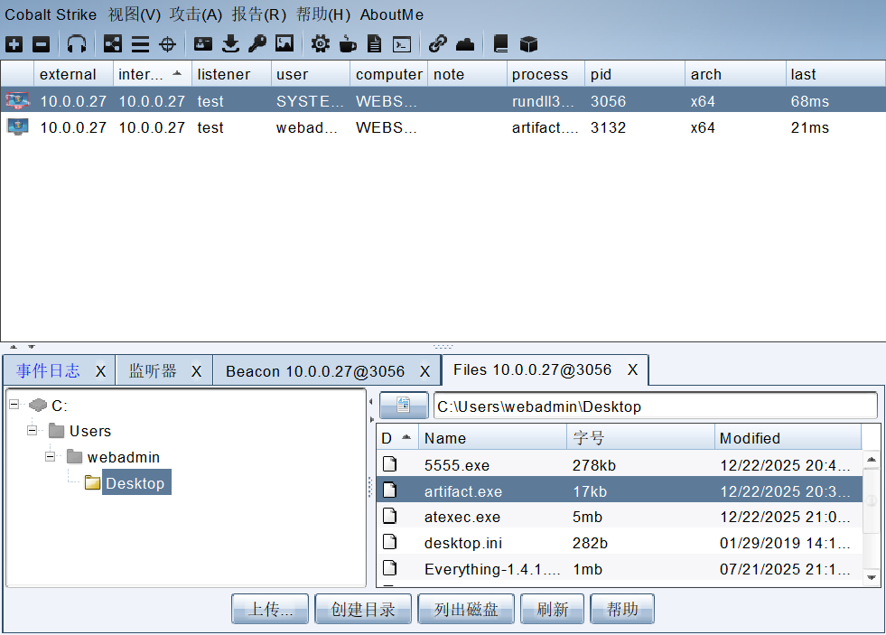 利用CS的文件管理功能上传生成的木马到webserver主机的网站目录下