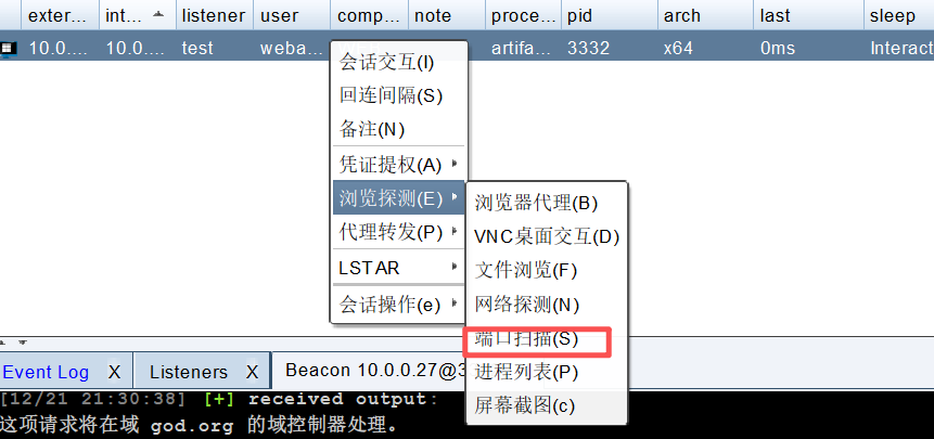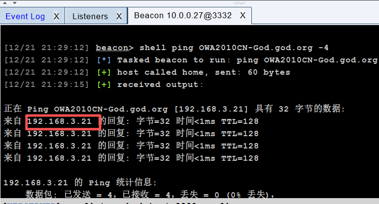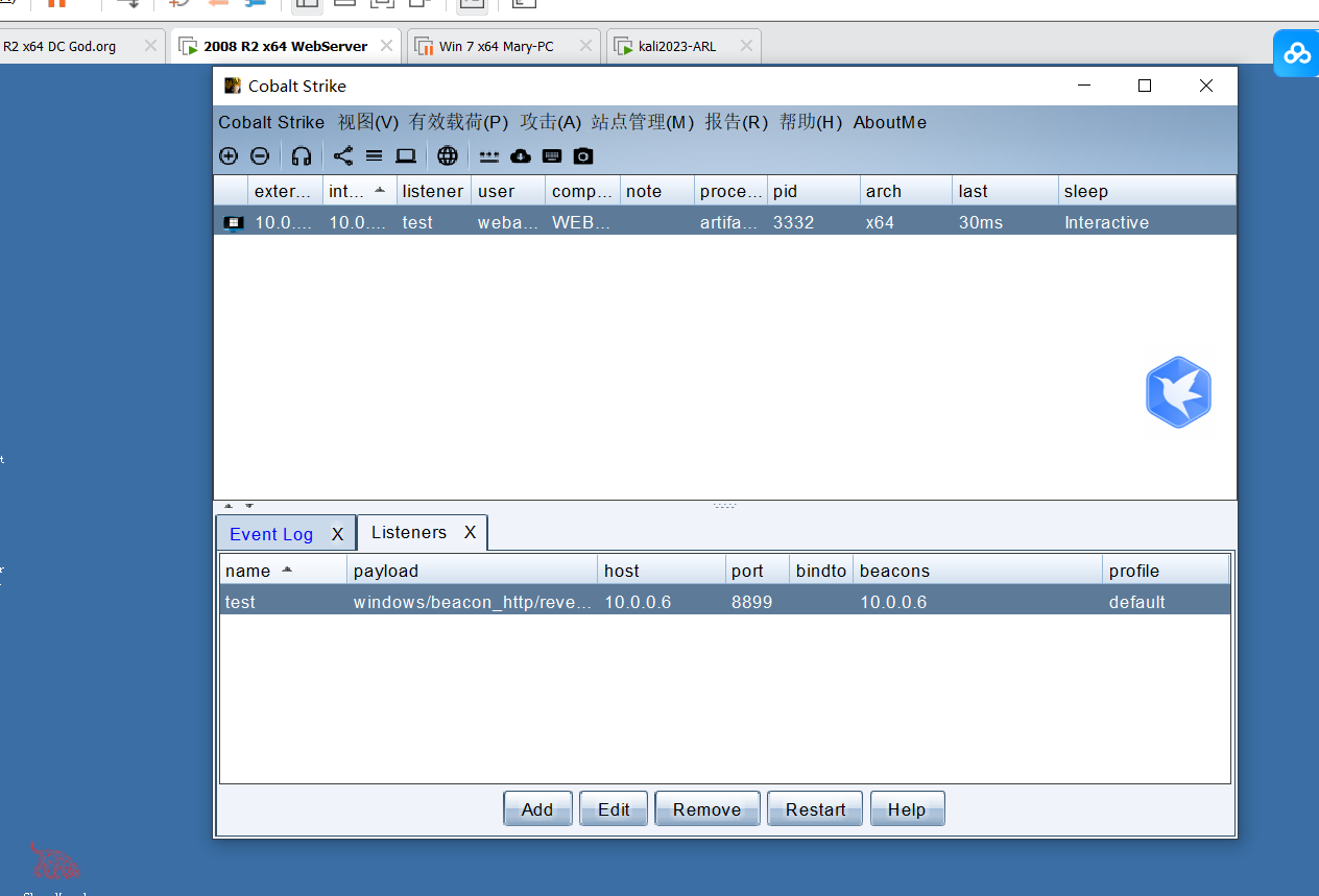 接下来将取得的cmd权限转移到CS上面,使其上线!