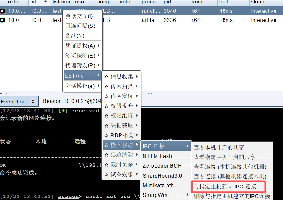 横向移动包括用来进入内部网络和控制网络上的远程系统的技术。通常需要借助内网代理来探测内网中存活的资产,并确定最终的攻击目标,然后通过收集到的用户凭据,利用各种远程控制技术对目标发起攻击。