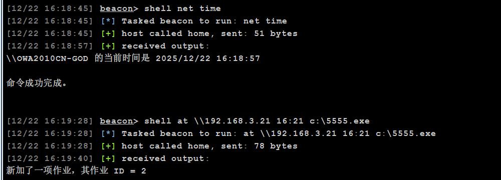 #利用收集到的账号密码信息,调用上传的atexec.exe脚本连接指定的主机(IP地址)并在引号内输入想要执