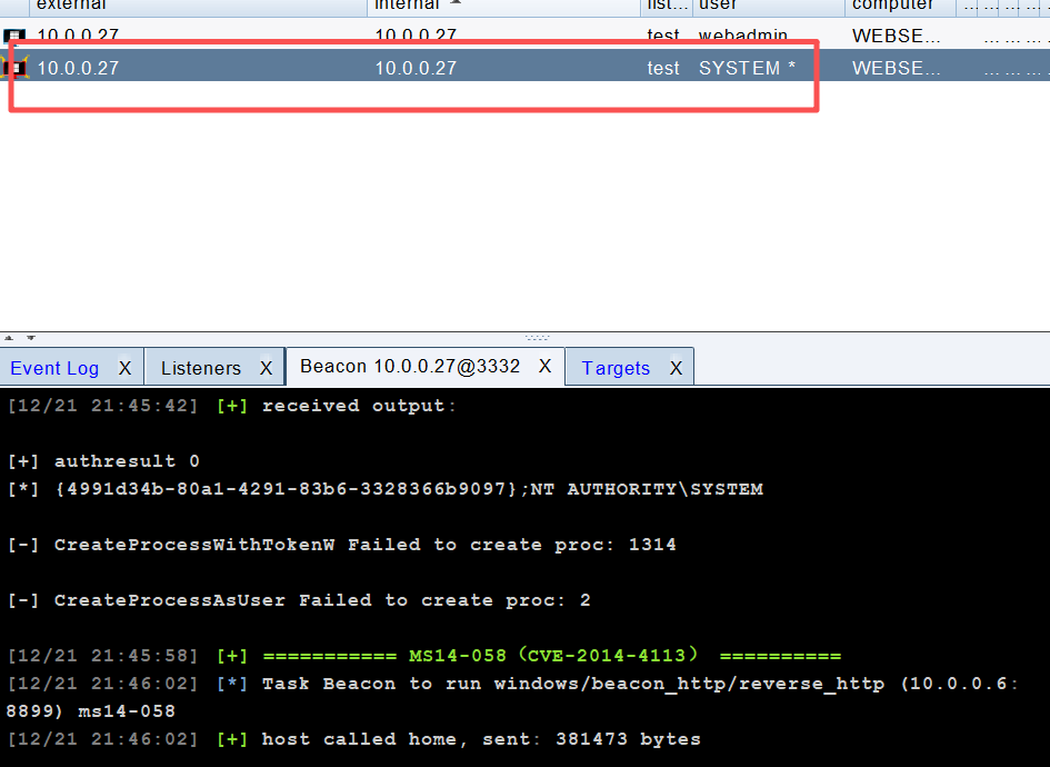 首先拿到webshell之后,利用webshell上传CS生成的木马,调用webserver主机运行木马并上线