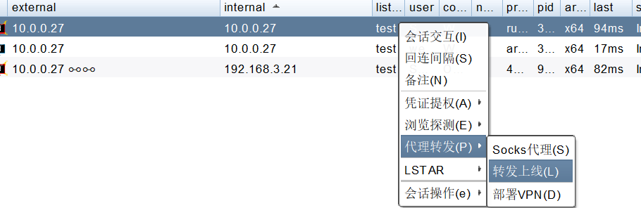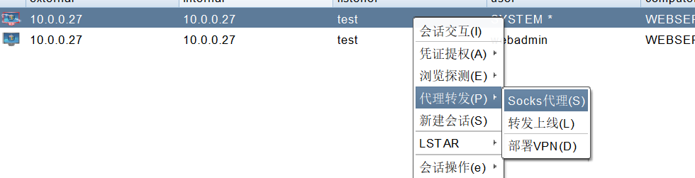 可以使用代理转发,直接开启SOCKS代理转发功能,不需要上传各种工具,就可以在